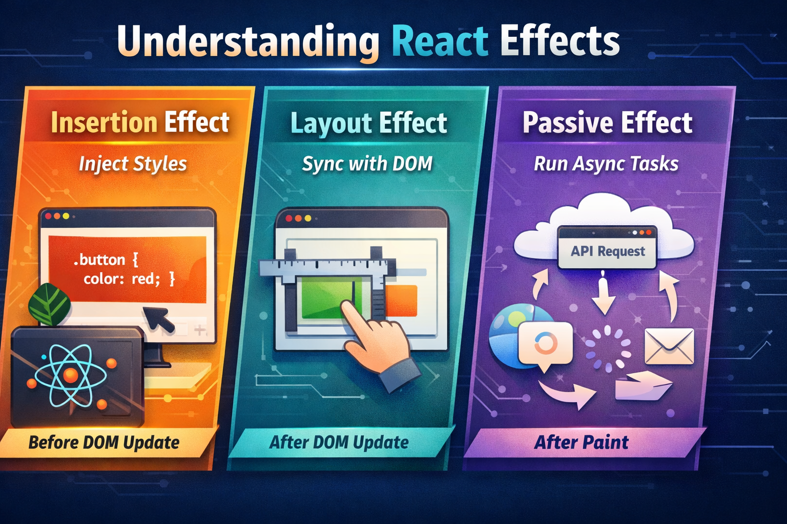 React将副作用分为三层:Insertion → Layout → Passive